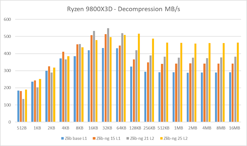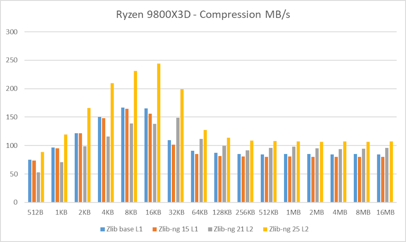 I’ve updated this post with new benchmark results on a Ryzen 9800X3D, including comparisons using zlib, zlib-ng (as previously tested), and the new 2025 release of zlib-ng, which delivers a significant performance improvement..